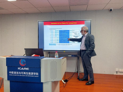 涂正凯研究员首先对Giuseppe Spazzafumo教授的到访表示了热烈的欢迎,并简要介绍了意大利卡西诺与南拉齐奥大学在国际学术界的重要地位以及Spazzafumo教授在氢能研究领域的杰出贡献。随后,Spazzafumo教授正式开启了他的精彩演讲。教授首先向听众们简要介绍了世界主要国家的年均能源消耗与化石燃料的储备情况,分析了这些化石燃料对环境的不同影响,接着提到了几种常见可用于交通工具的氢基燃料,包括纯氢气、氢气-甲烷混合物、氢气-汽油混合物及其混合动力与电动动力总成。
