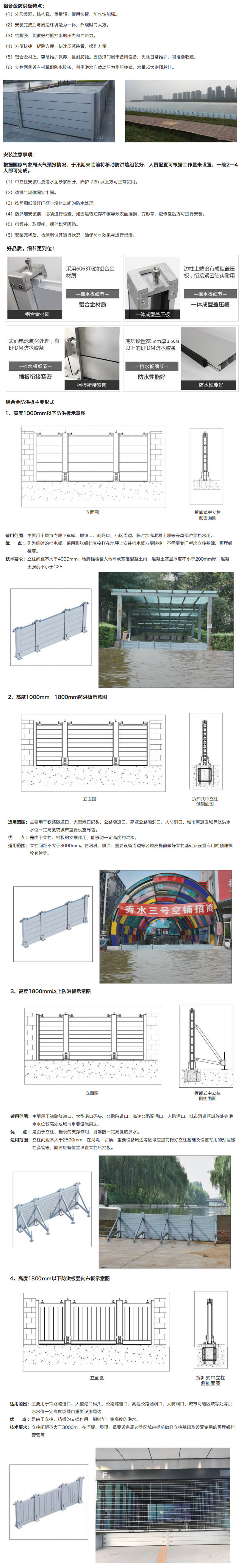 适用范围:主要用于城市内地下车库、地铁口、商场口、小区周边、临时加高混凝土坝等等局部位置挡水用。