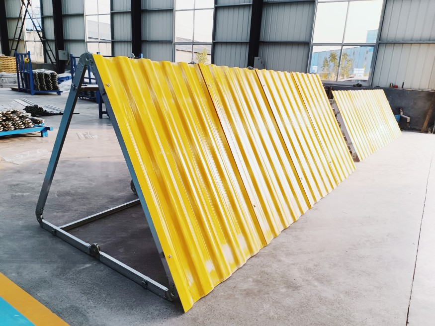 玻璃钢防汛子堤工作原理:装配式板坝防洪子堤是引用水工中面板坝原理,用多个角架、横梁和挡水面板连接形成刚性子堤坝体,挡水面板起到面板坝挡水作用。施工时埋入堤基土中起到防绕渗作用。
