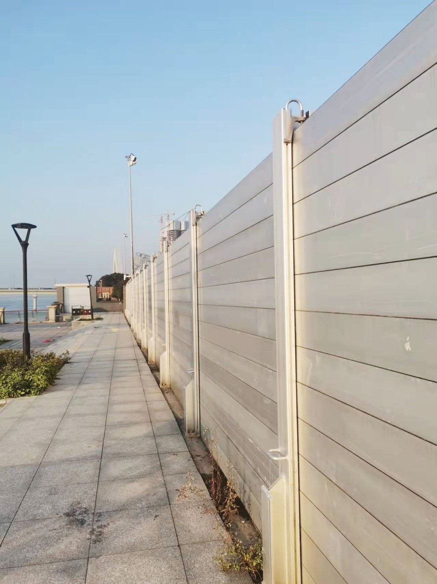 铝合金防洪墙一般汛期安装,非汛期可拆除,快速应对极端天气造成内涝,快速安装,高度可调。